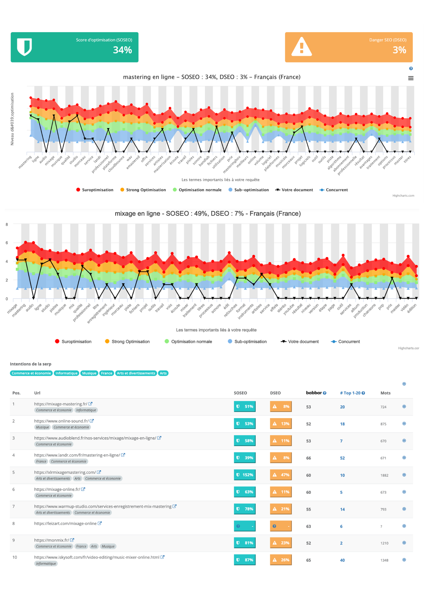 Toute cette analyse est mêlée en parallèle à une analyse des concurrents. En effet, la stratégie sera différente en fonction de la difficulté de la requête. Si la requête est peu concurrentielle, on aura besoin de moins d’optimisation, moins d’autorité que si l’on vise une requête très concurrentielle.Â
