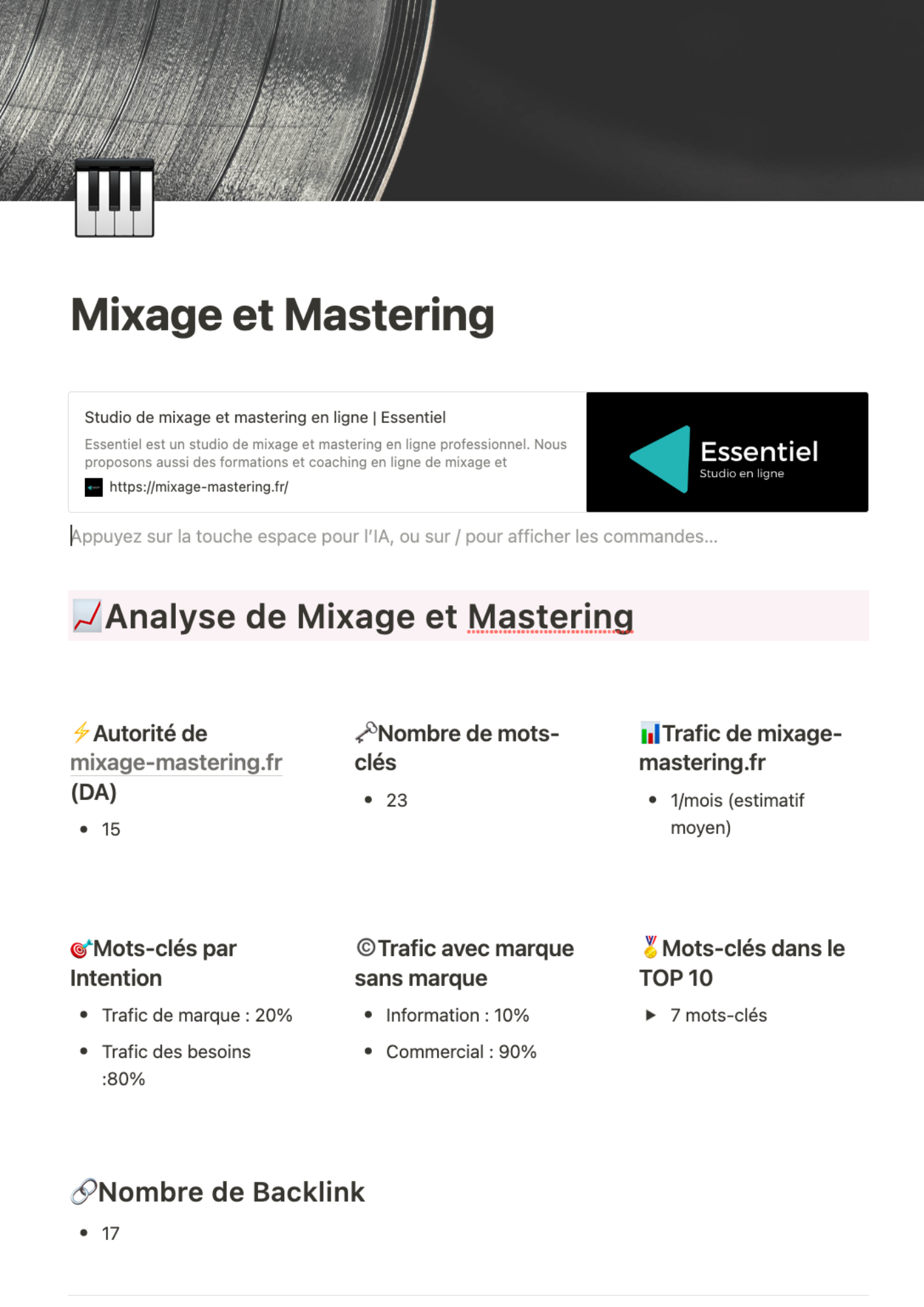Il évalue divers éléments clés tel que les problèmes techniques, l’optimisation du contenu, la qualité des backlinks, et l’analyse de la concurrence.